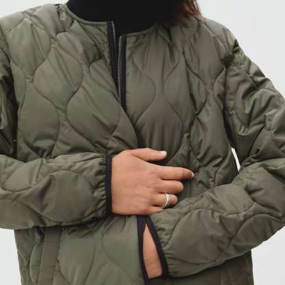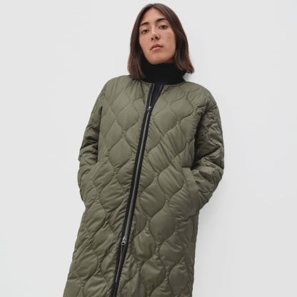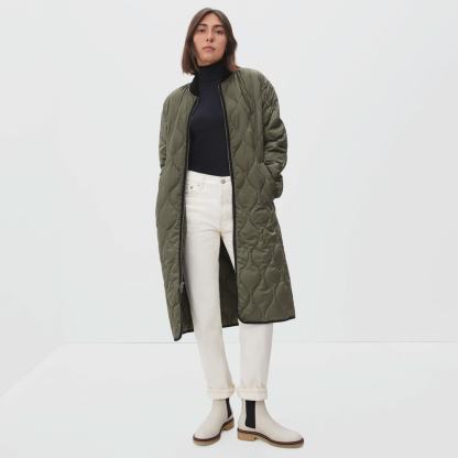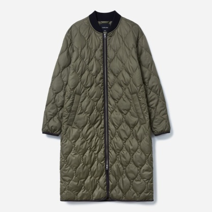 Made entirely from 100% recycled polyester, the ReNew Long Liner is lightweight, packable, and perfect for easy cold-weather layering.* Plus, it features a classic crew neckline, a zip front, handy side pockets, an easy below-the-knee length, and a quilted design. Wear it as a standalone jacket or layer it under a coat for extra warmth without the weight. *Some of the zippers and trim aren’t 100% recycled, but we’re working on it.We’ve eliminated 90% of the virgin plastic from our supply chain. Learn about what we’ve done—and the challenges ahead—on our No New Plastic page.