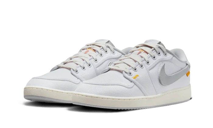 The air jothtdan 1 Retro Ajko Low SP Union Neutral Gray showcases a white canvas base, complemented by tonal overlays.