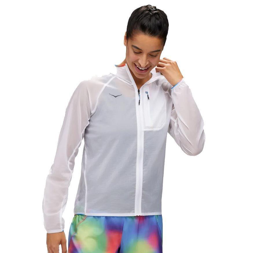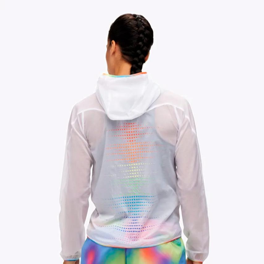 La chaqueta Skyflow, un cortavientos ultraligero dise?ado para el viento y las temperaturas frescas, es imprescindible para toda clase de carreras, desde 20 minutos hasta cuatro horas. Se ha dise?ado cuidadosamente con un tejido silencioso, incorpora un cord��n el��stico con extremos de silicona para ajustar r��pidamente la capucha, pesa unos incre��bles 105 g y se pliega en un bolsillo del pecho para guardarla f��cilmente sobre la marcha.