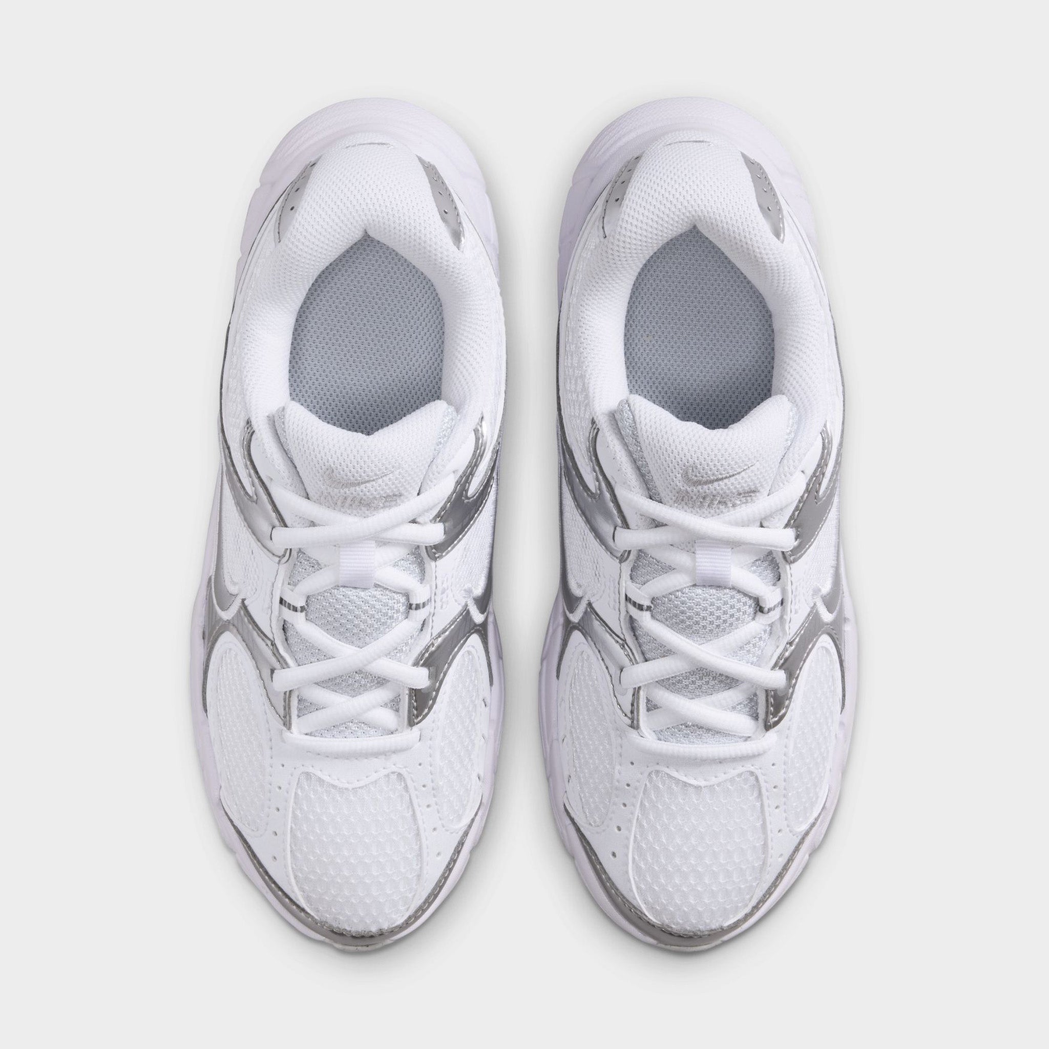 The Nike V5 RNR GS in White and Metallic Silver brings early-2000s energy to today’s streets. With its layered look and chunky sole, this sneaker’s made to stand out while keeping it smooth and comfy all day long.