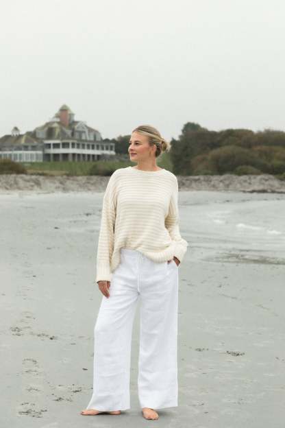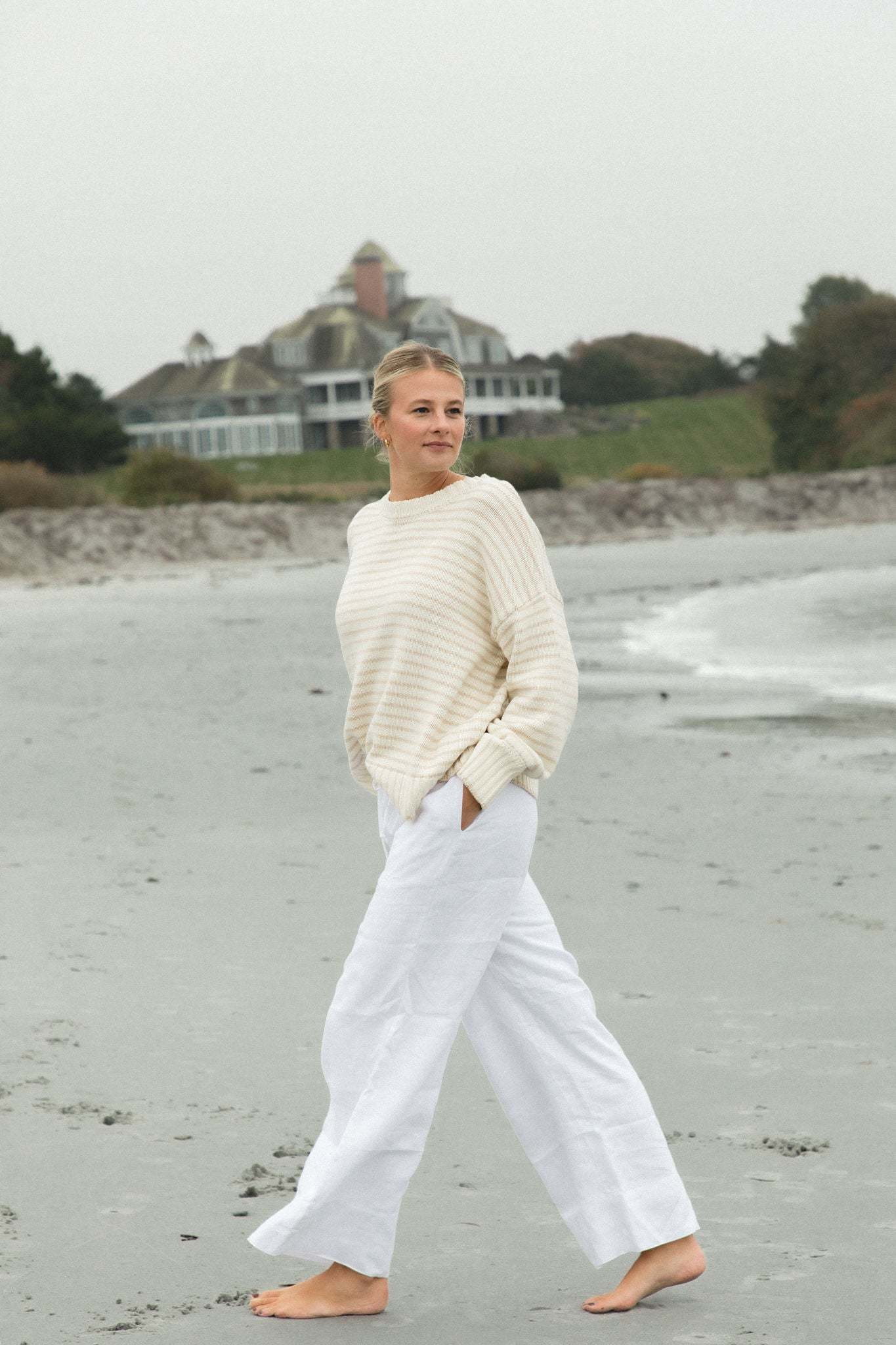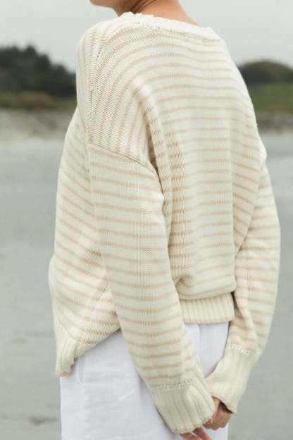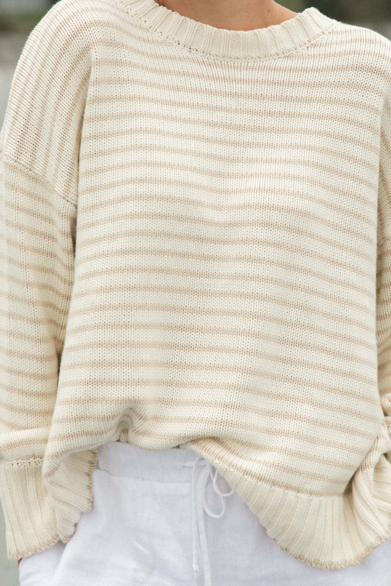 Cozy up in the Beachcomber Oversized Knit Striped Sweater. This cream sweater, accented with soft taupe stripes, offers a relaxed, oversized silhouette that��s perfect for breezy days by the coast or laid-back evenings. With its effortless style and timeless appeal, it��s a go-to piece for bringing coastal warmth and understated elegance to any outfit.