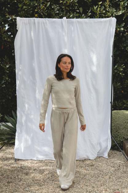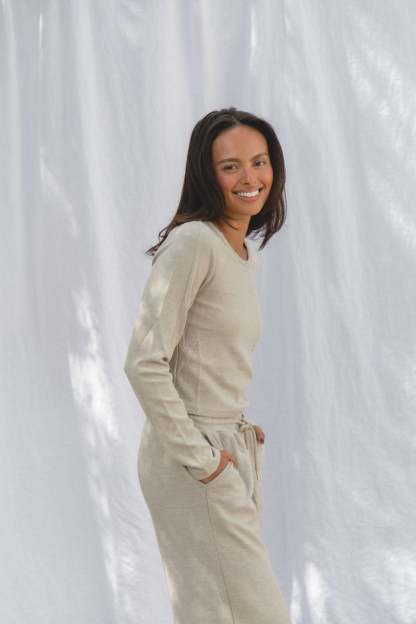Expertly crafted, this Sand Dune Woven Knit Long Sleeve is designed to provide ultimate comfort and style. The soft woven fabric and neutral sand color make it a versatile addition to any wardrobe. Stay cozy and chic with this must-have piece.