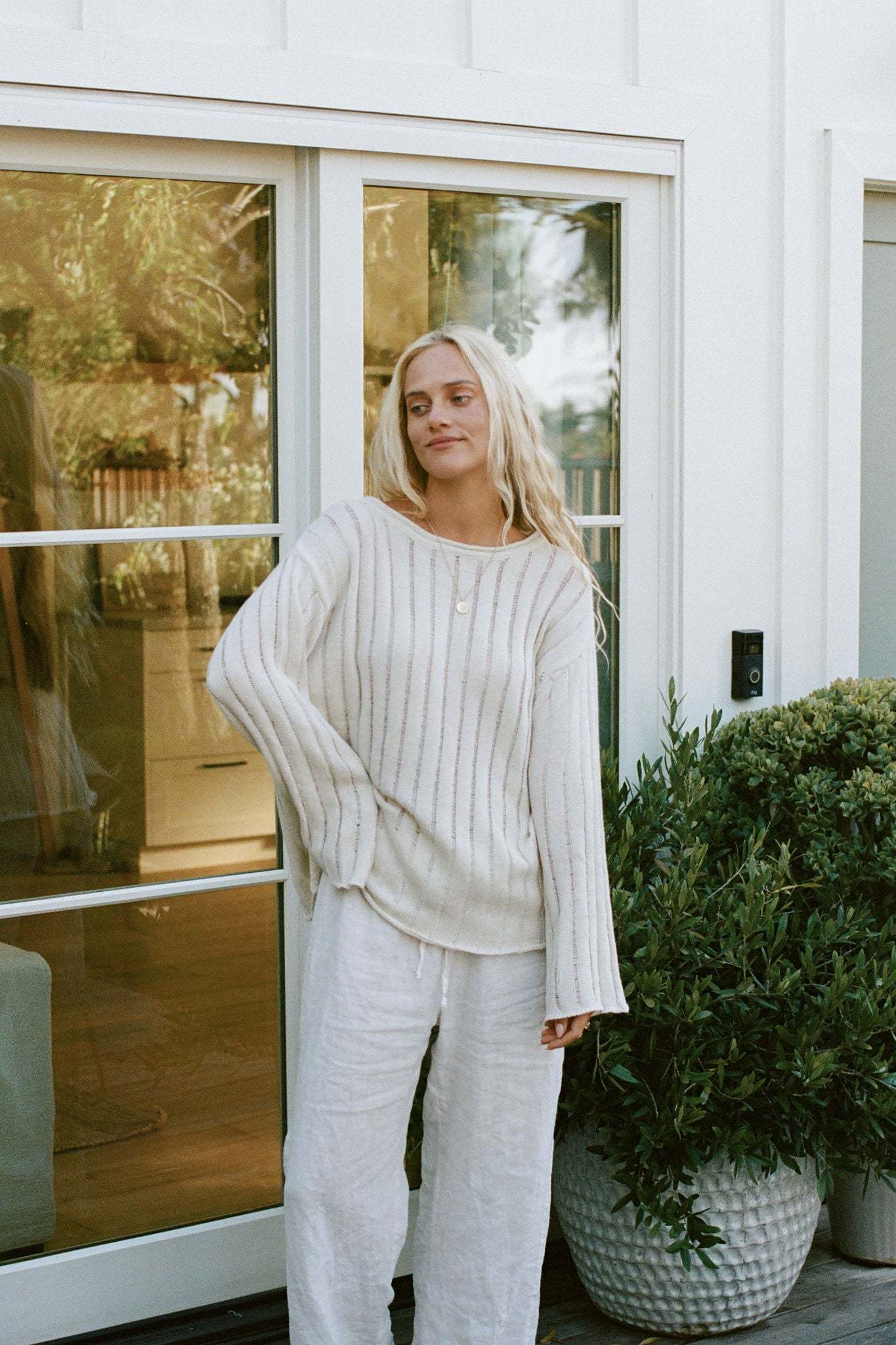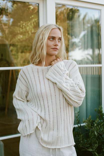 Upgrade your wardrobe with our Sandy Shores Ribbed Cotton Sweater. Made from lightweight ribbed cotton, you'll reach for this sweater for a soft and comfortable option.