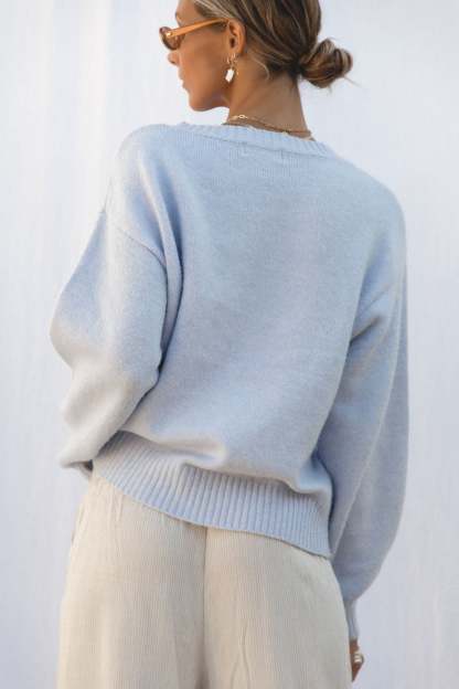 Crafted from soft, plush knit material, the Seaside Knit Pullover Sweater delivers effortless coastal-chic comfort with its relaxed fit.