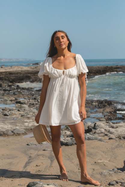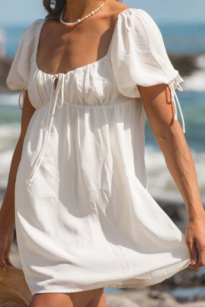 Introducing the Willow Chiffon Babydoll Mini Dress. The flowy fabric and tie detailing add a touch of whimsy, while the babydoll silhouette keep it classic.