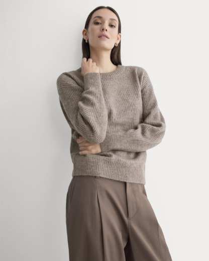 Giving all the warm and fuzzies—without the itch or the weight, in a classic crew neckline, it features a cool rib pattern, a relaxed silhouette, and is made from our prickle-free, pilling-resistant, and responsibly-sourced Alpaca blend. You’ll wear it to work, WFH, maybe even in bed—we won’t tell.