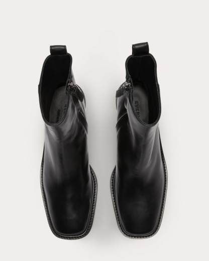 Clean lines meet rich leather in this architectural style, featuring a modern square toe, cushioned insole for extra comfort, and side zip for added ease. We love it with super long pants or cropped denim—topped off with an oversized jacket or sweater.