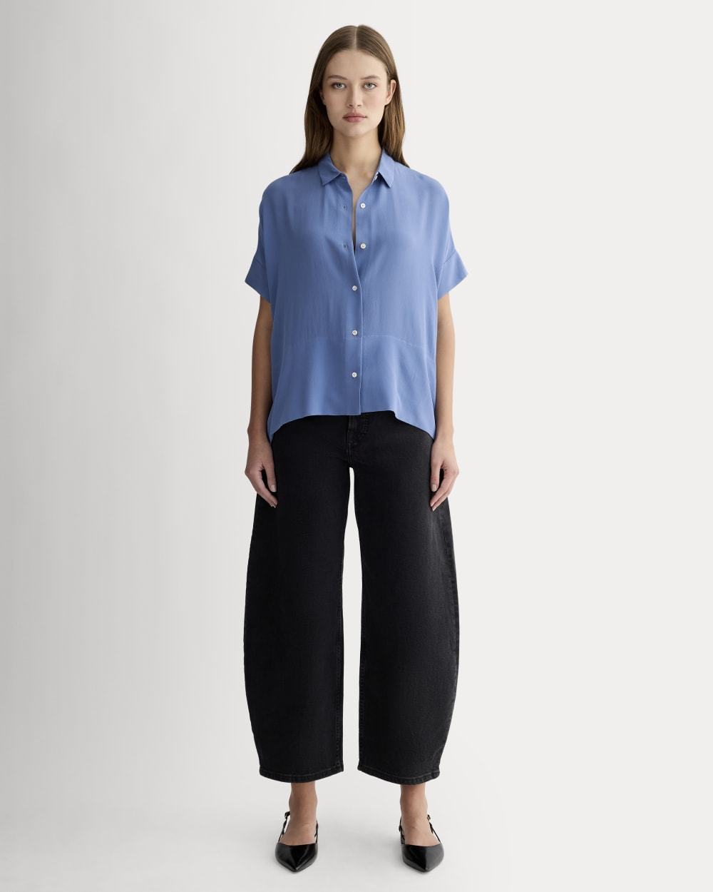 The Boxy Shirt in Washable Silk has a classic button-down front and boxier, looser fit. Plus—it’s made of our eco-conscious Clean Silk, for more beauty and less waste.
