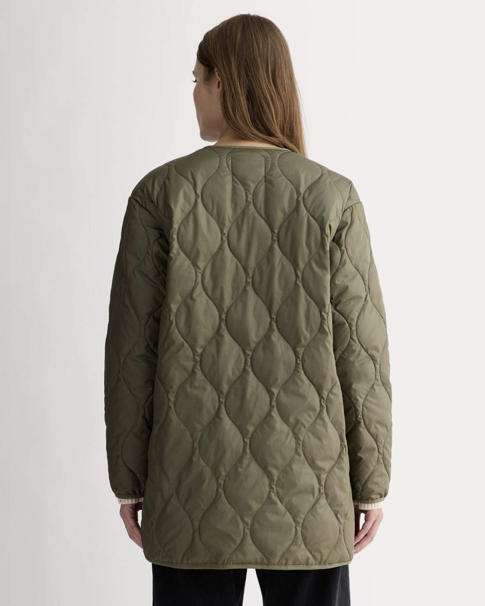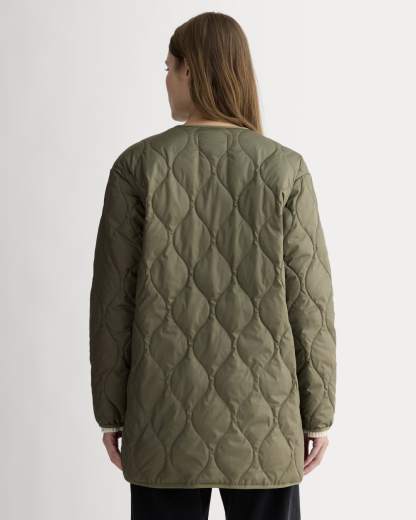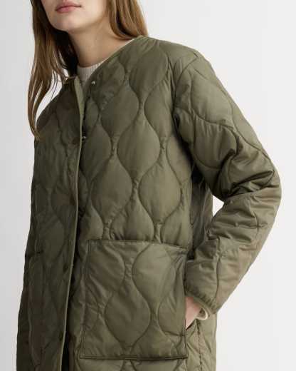 We took our favorite military-inspired liner and made it shorter for easy layering. Made entirely from 100% recycled polyester*, The Quilted Liner is lightweight, packable, and perfect for easy cold-weather layering. Plus, it features a classic crew neckline, snap fastening, handy side pockets, and a quilted design. Wear it as a standalone jacket or layer it under a coat for extra warmth without the weight. *Some of the snaps and trim aren’t 100% recycled, but we’re working on it. We’ve eliminated 90% of the virgin plastic from our supply chain. Learn about what we’ve done—and the challenges ahead—on our No New Plastic page.