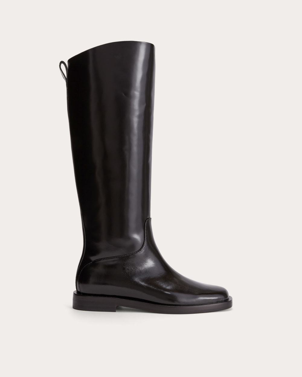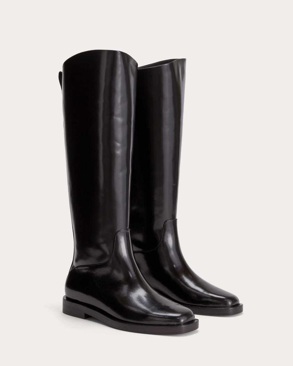 This piece features a soft, square toe, welt detailing, pull-on knee-high length with a padded insole in thick, premium sourced LWG-certified leather.