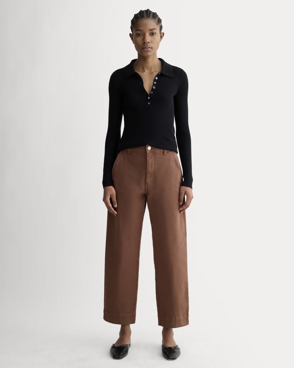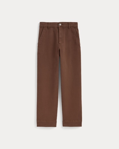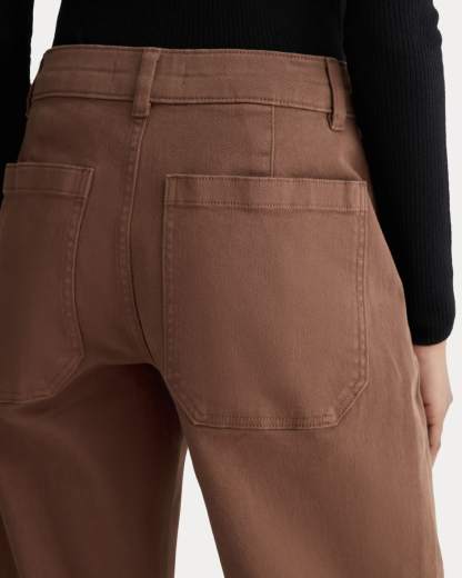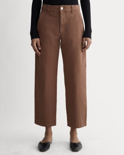 This piece features a waist-nipping high-rise, relaxed, straight silhouette that hits right at the ankle, front angled pockets, and two back patch pockets in our organic cotton twill fabric.