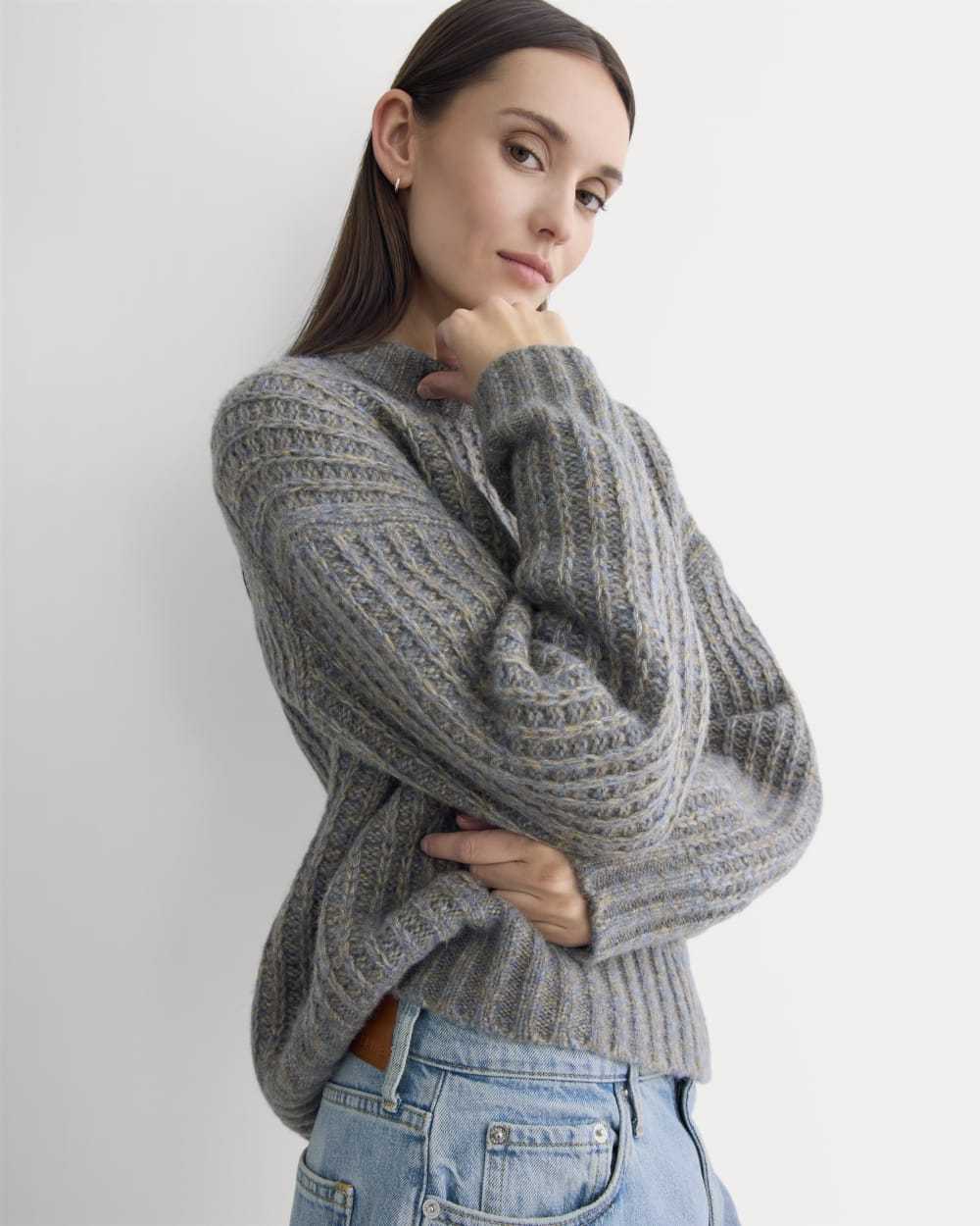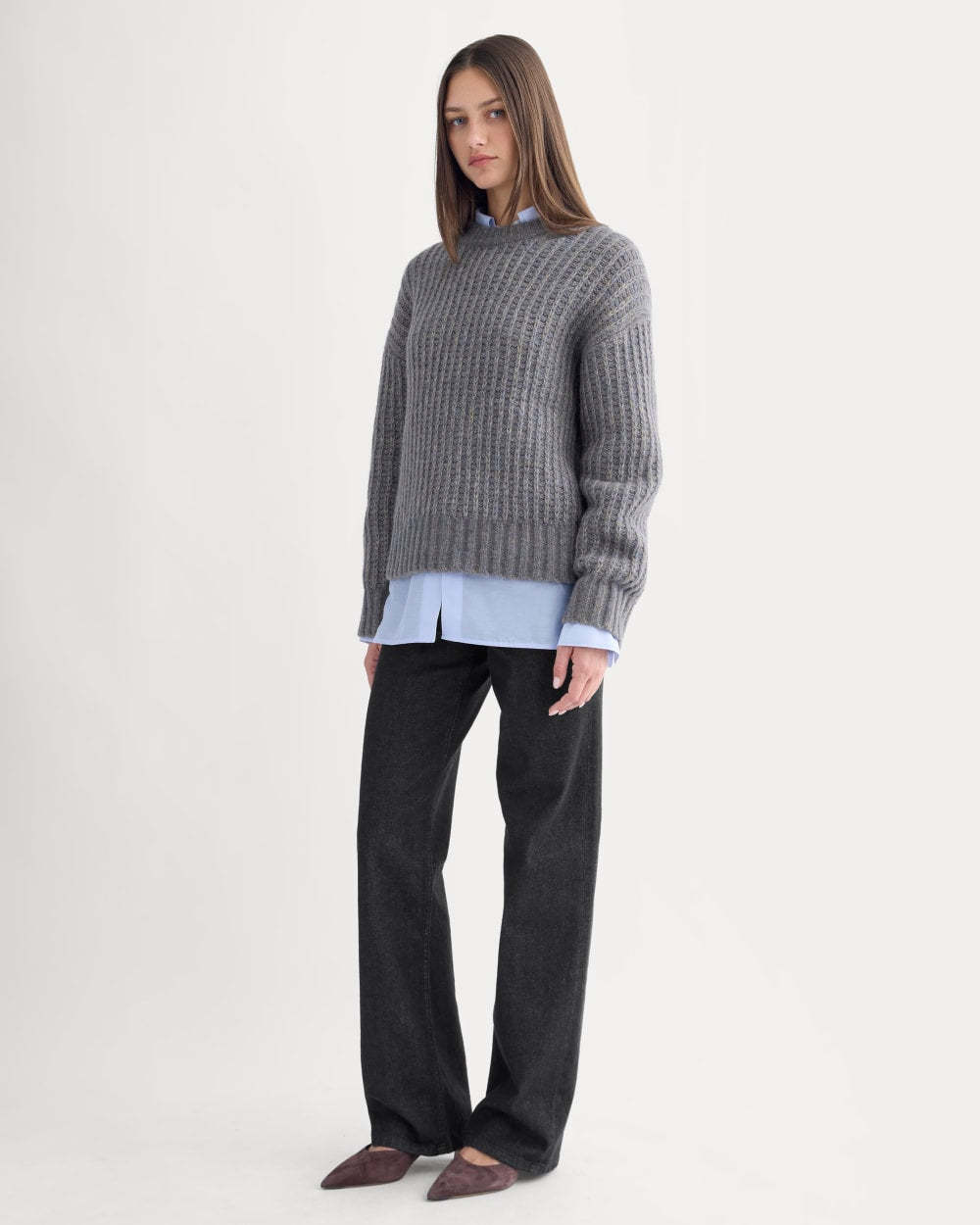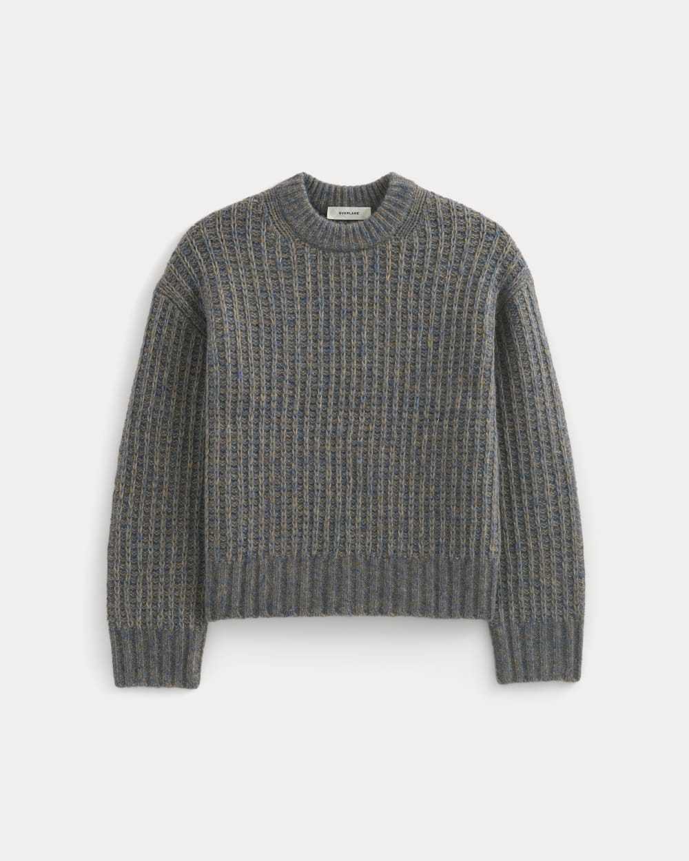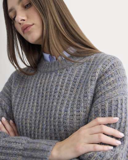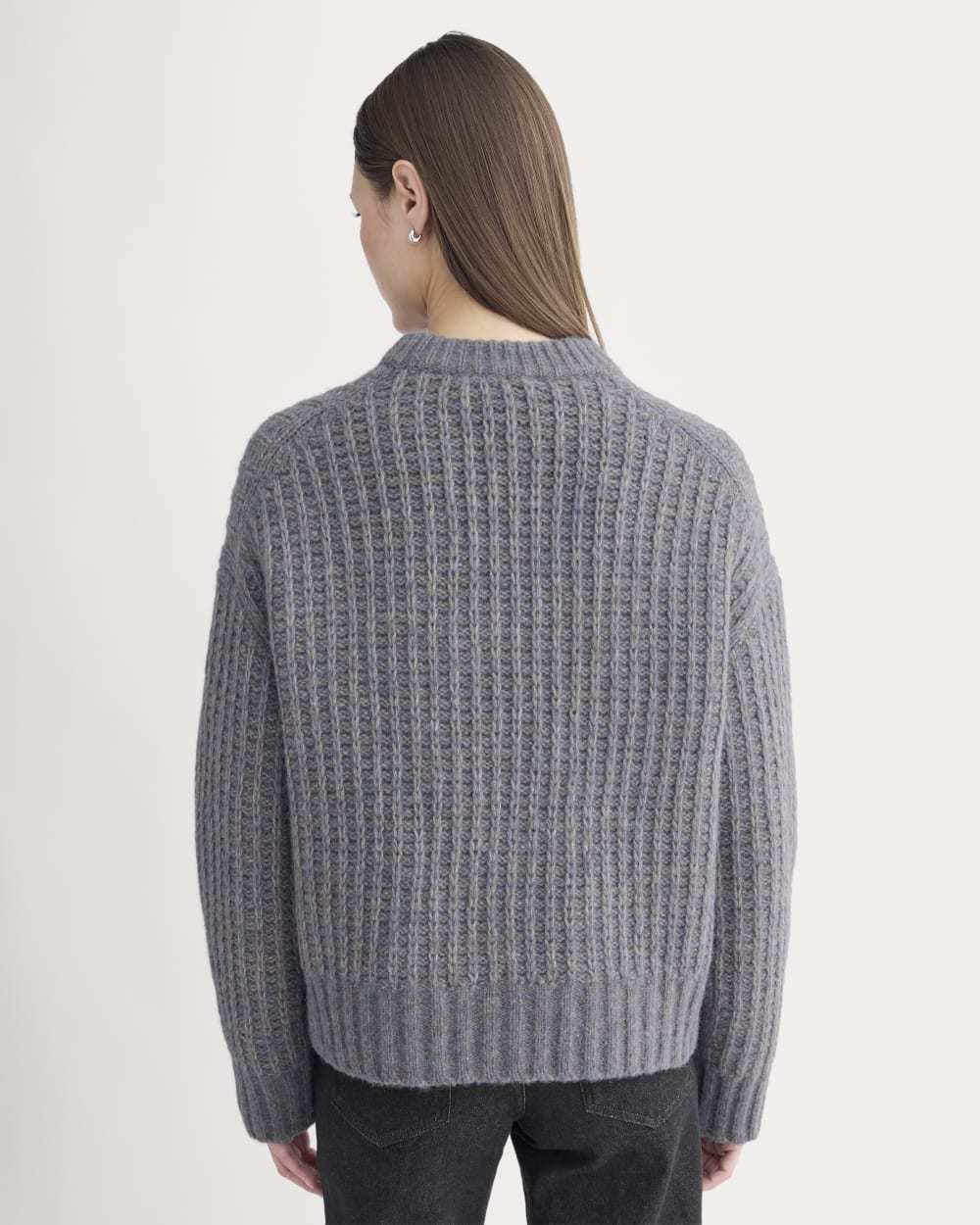 Made in our signature chunky, yet plush alpaca, responsibly-sourced Merino wool, and organic cotton blend, an oversized fit that hits at the hip with dropped shoulders—it’s as lax as you should be during holiday break.
